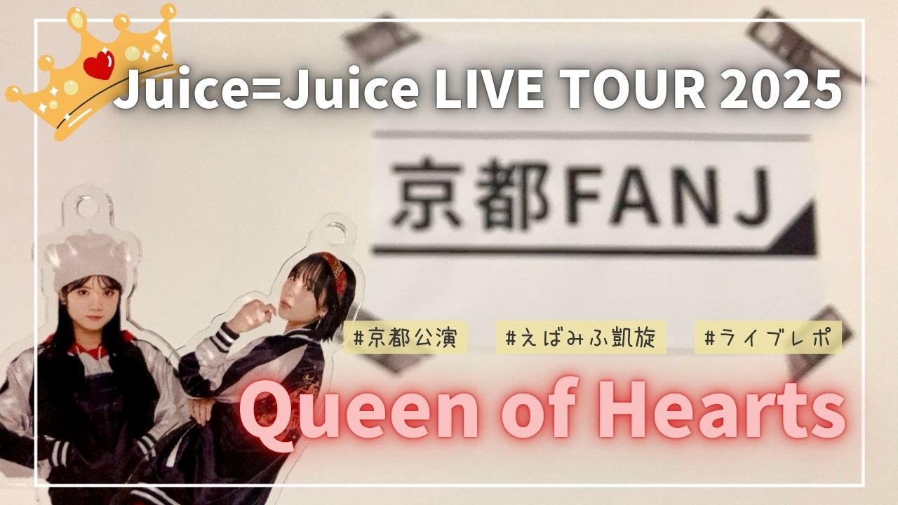 ここでは、Juice=Juice LIVE TOUR 2025 Queen of Hearts のセットリストやメンバーのブログ、公式映像や私個人の感想(京都 夜公演)などをまとめています。